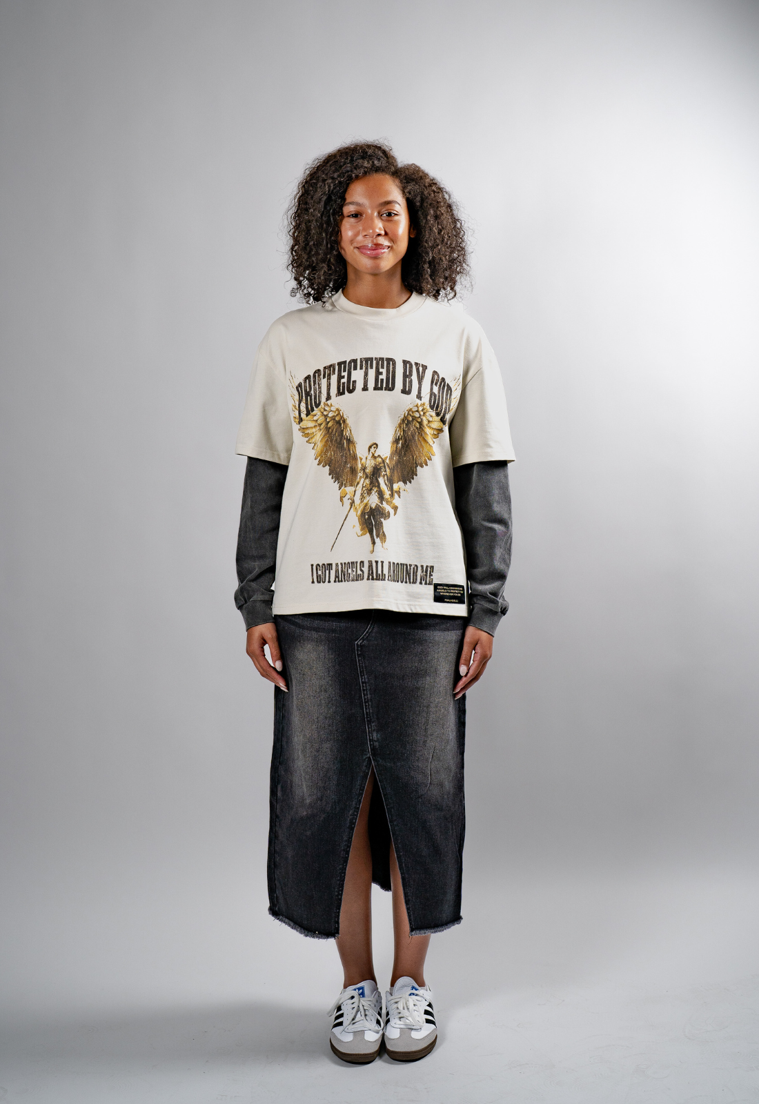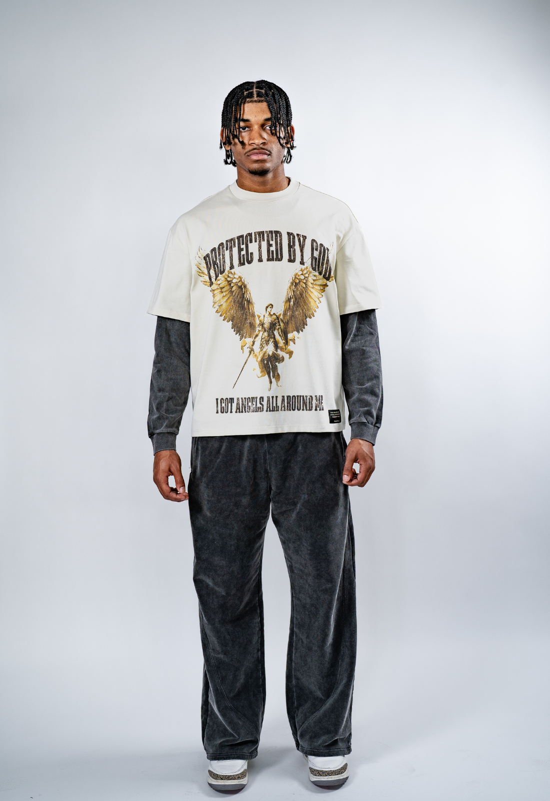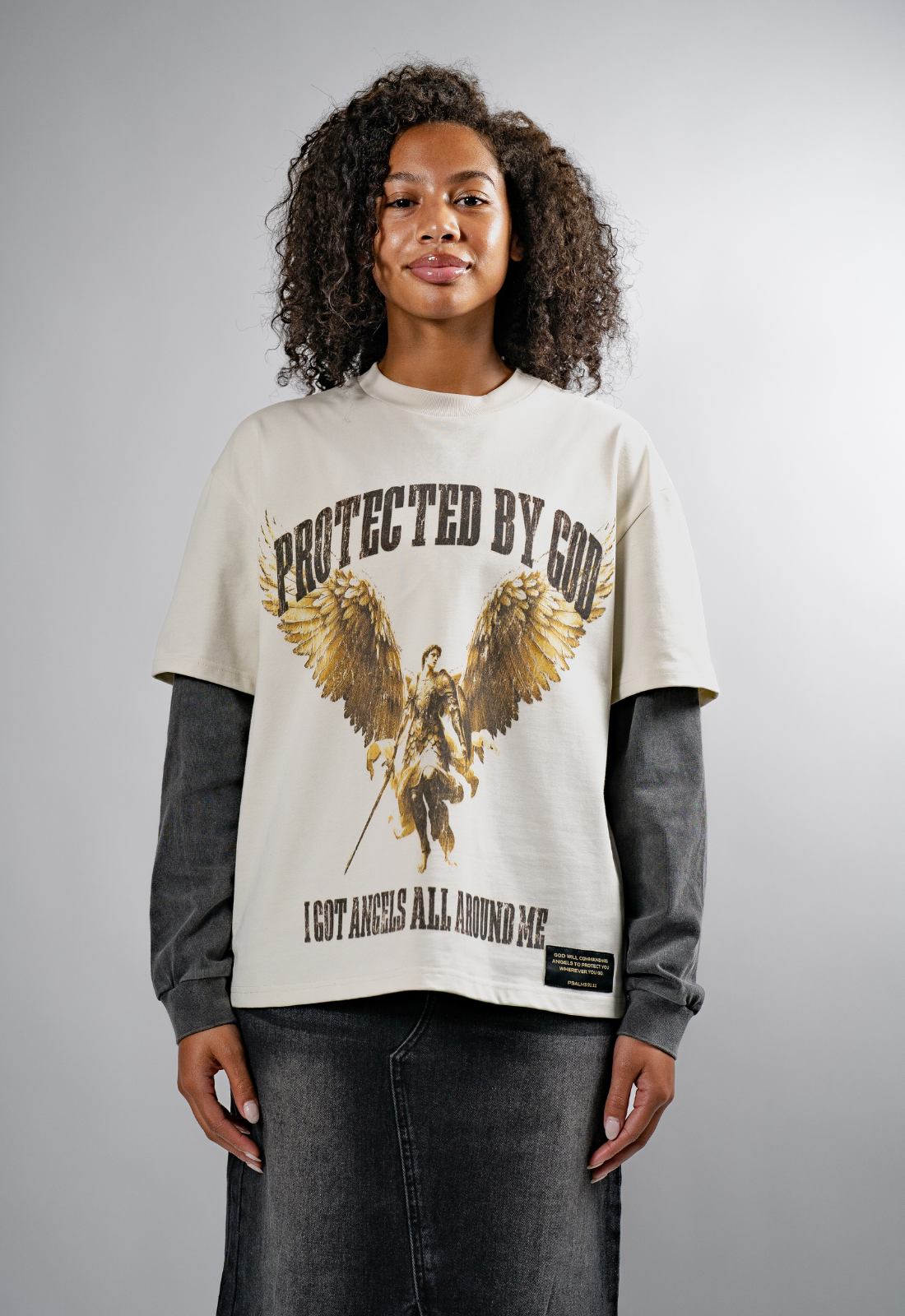 "PROTECTED BY GOD" DOUBLE LAYERED BOXY TEE